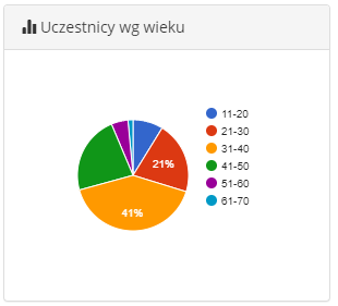 • A jak jest z wiekiem? To już pewna tradycja osoby w wieku 31-40 lat stanowią najmocniejszą reprezentację tj 41% wszystkich startujących. Wydawać się by mogło, że najmłodsi zdominują tego typu biegi, a tu niespodzianka. Grupa 21-30 lat i 41-50 praktycznie jest tak samo reprezentowana przez taką samą ilość zawodników tj ok 21%
